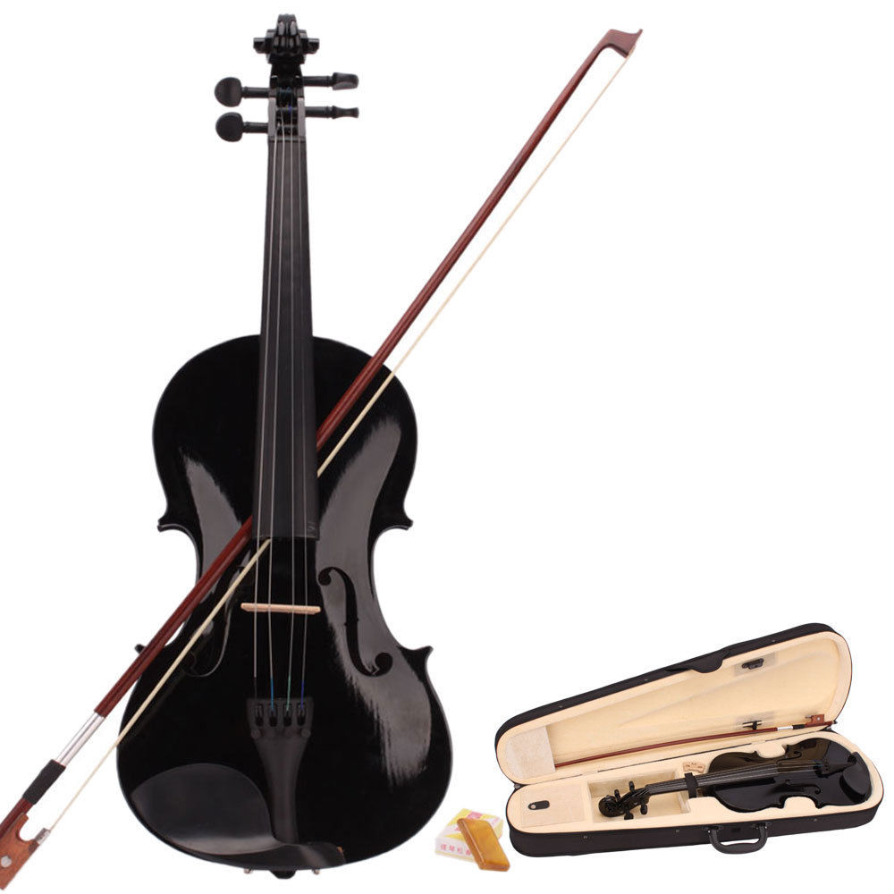 Hot School Acoustic Violin 4/4 Full Size Fiddle W/Case and Bow Rosin Black Color
