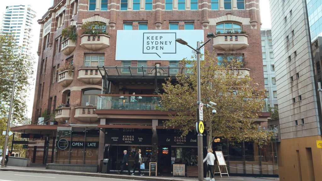 In a development so painfully ‘Sydney’ it hurts, the Kings Cross Hotel has been forced to rip down its “Keep Sydney Open” banner after a residential mob of lockout law-supporters complained to the local council.