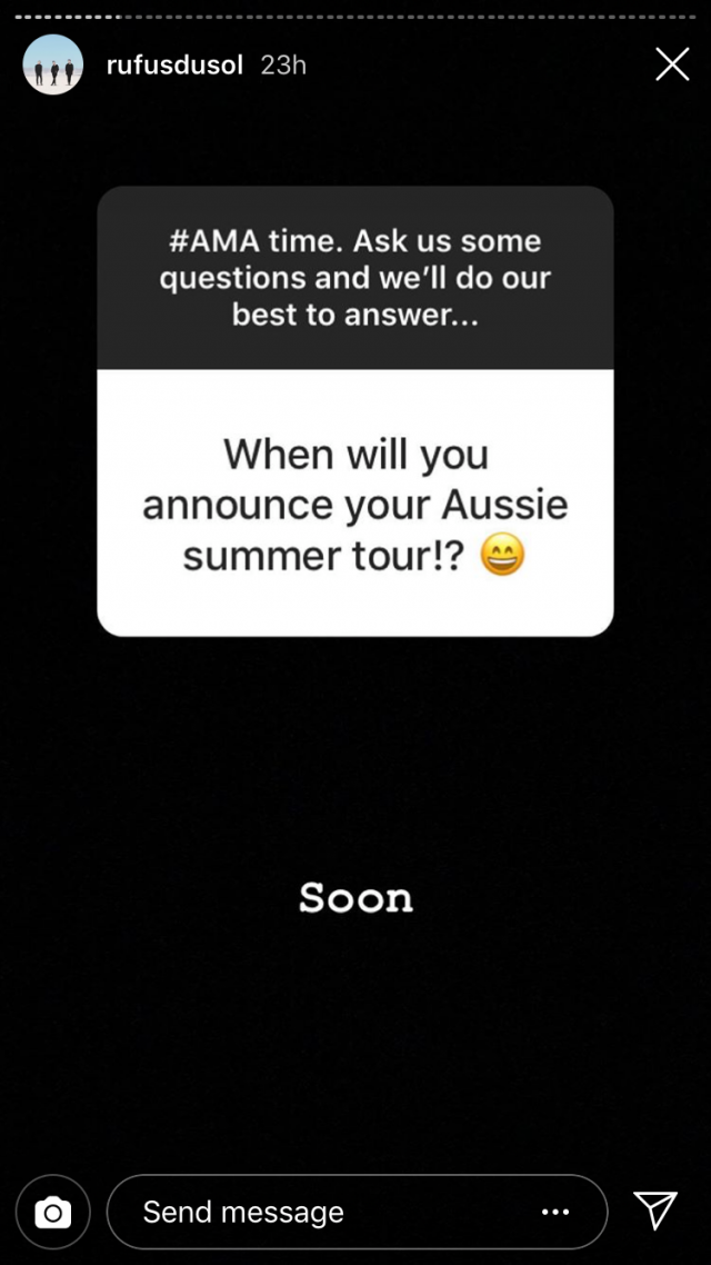 Australian electro trio RÜFÜS DU SOL (formerly RÜFÜS) have officially ruled themselves out of Splendour In The Grass 2019, while also teasing a new Australian headline tour over the summer period.